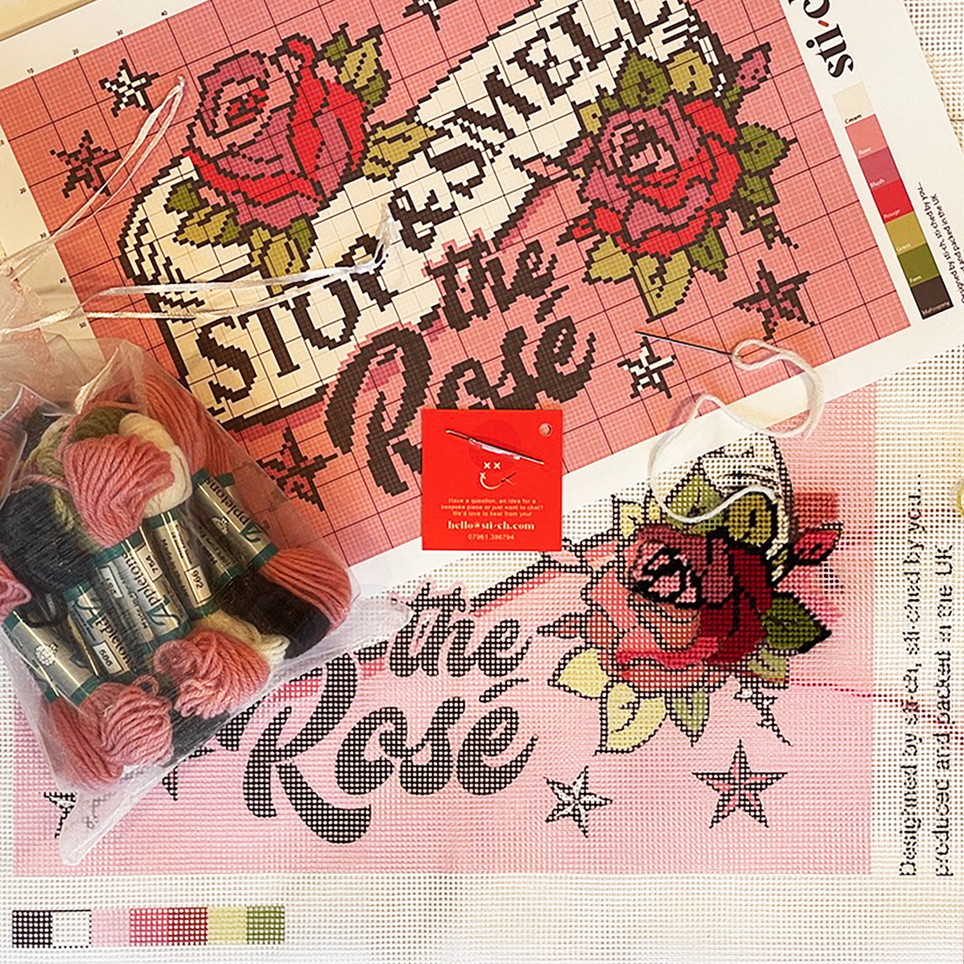 This design comes with a printed canvas, suitable for beginners and the more accomplished crafters. The cross-stitch kit includes a printed guide, Appleton wool, blunt ended nickle needles and a printed canvas—all packed beautifully in a handy Sti-ch bag.